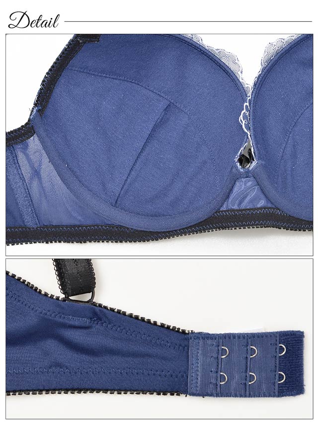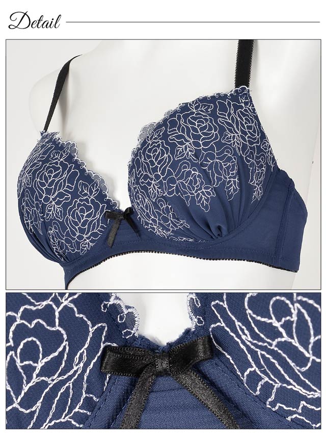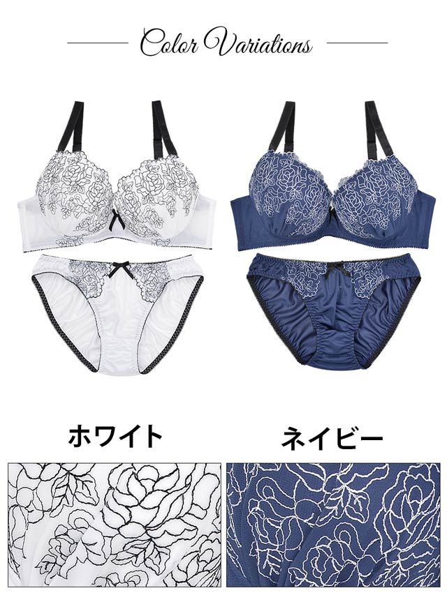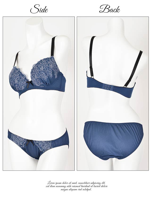 落ち着いたシックなカラーに、コードレースでバラを描いたキレイめランジェ♪カップ全体にあしらわれたバラは、身に着けるだけで上品で女性らしい印象にしてくれます♪厚みのある内蔵パッドで、バストをきれいに見せてくれます。ストラップは幅広の15mmで安定感もバッチリ!ショーツはデイリーユースにもおすすめなシンプルタイプ。オンナらしさをアピールしたいなら、このランジェリーが絶対オススメ!