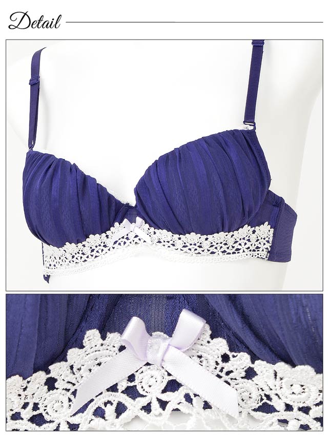 ラメストライプ柄のシフォンに刺繍レースを飾った上品ブラ♪柔らかなシフォンにキラキラと輝くラメストライプを織り込んだスタイリッシュなデザイン★アンダーバストには豪華な刺繍レースを飾り高級感漂う上品な印象に。谷間部分にも繊細レースを飾りつけ♪メンズ受け◎の清楚系ランジェリーです★