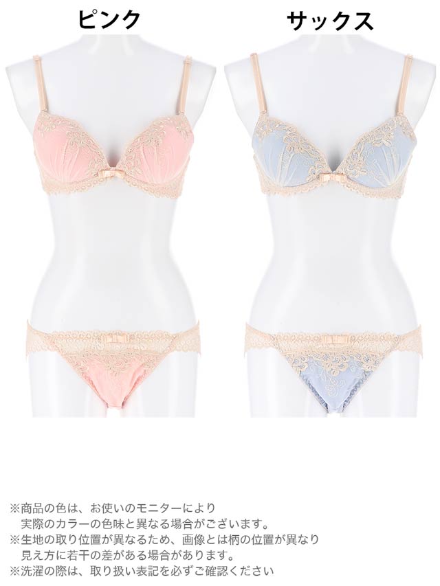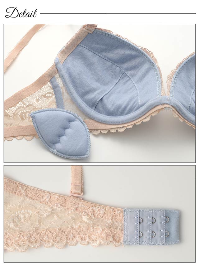まるでプリンセスのようなキュートランジェリー♪やさしいパステルカラーに、アイボリー調の優美なレースをあしらい、プチプラにみえない「高見え」なデザインを実現しました。ブラベルトやショーツにレースを贅沢に使い、可愛いだけではなく、色っぽさも詰め込みました♪