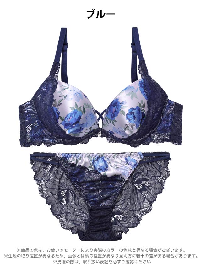 4/10新作!【EFサイズ】ビビッドブルームレーシィブラジャー&バック透けフルバックショーツ