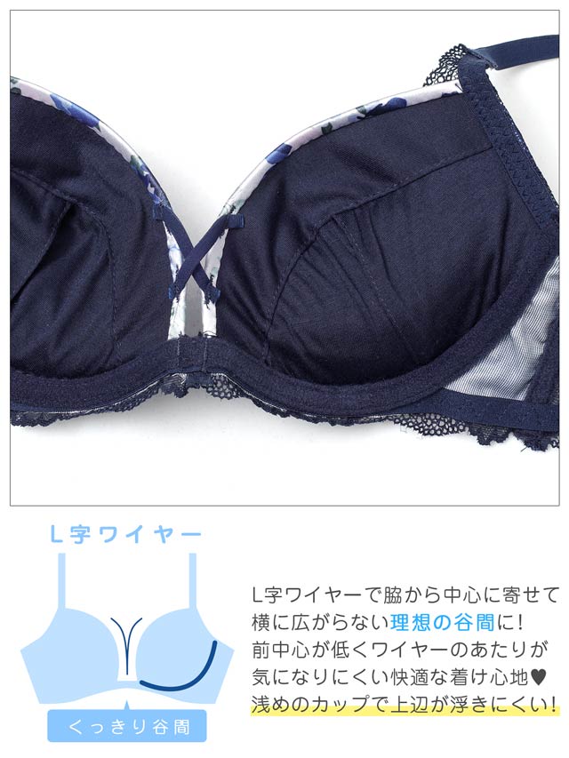 3/4カップ(モールドカップ)/ワイヤー:有(L字)/ホック:バック2段3列