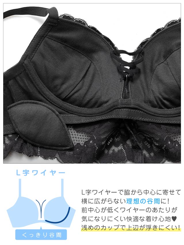3/4カップ(モールドカップ)/ワイヤー:有(L字)/ホック:バック2段3列