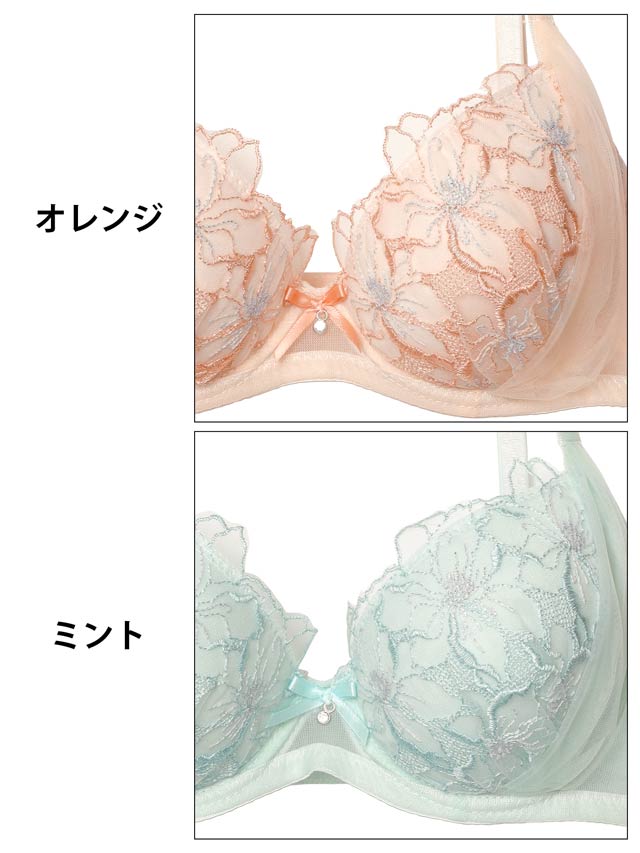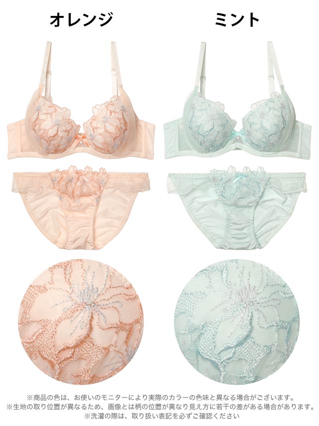 9/17新作!【EFサイズ】ルミナスチュールブロッサムブラジャー&フルバックショーツ[推し]