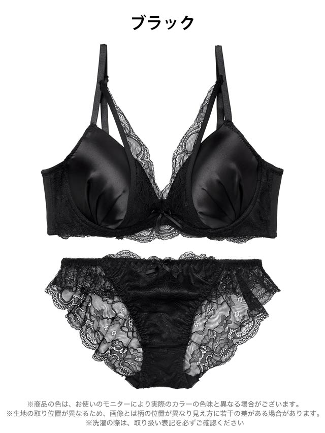 11/22再販!ジュエリーサテンレース育乳脇高ブラジャー&バック透けフルバックショーツ[推し][人気]