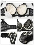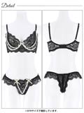 全面フラワーレース仕様にリボンから連なったコードデザインが可愛らしいランジェリー。フリルラインのショーツサイドにバック透けを加え色気もばっちり◎ 脇高仕様で美胸キープも欠かさない1着です♪