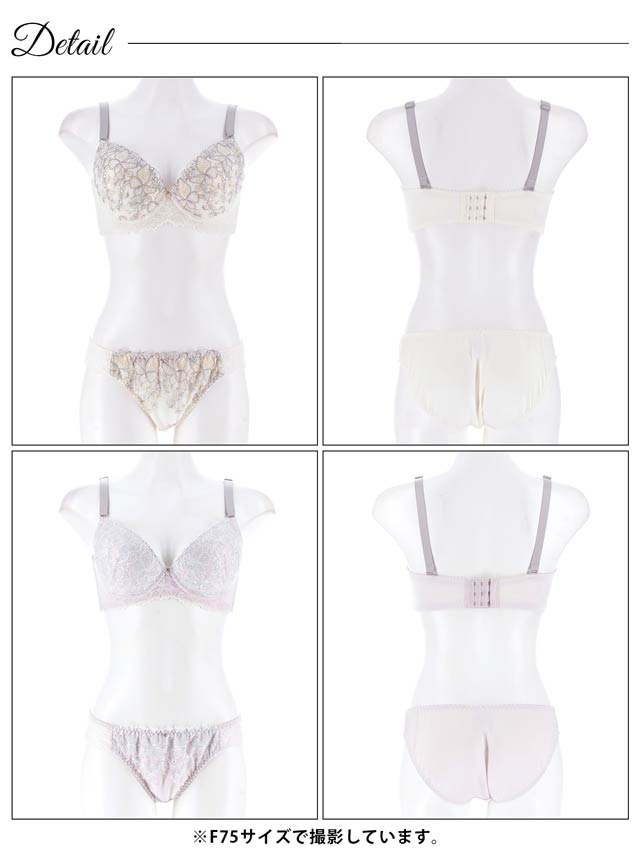 7/25新作!【EFサイズ】フェミニンリーフエンブロイダリーブラジャー&フルバックショーツ[推し]