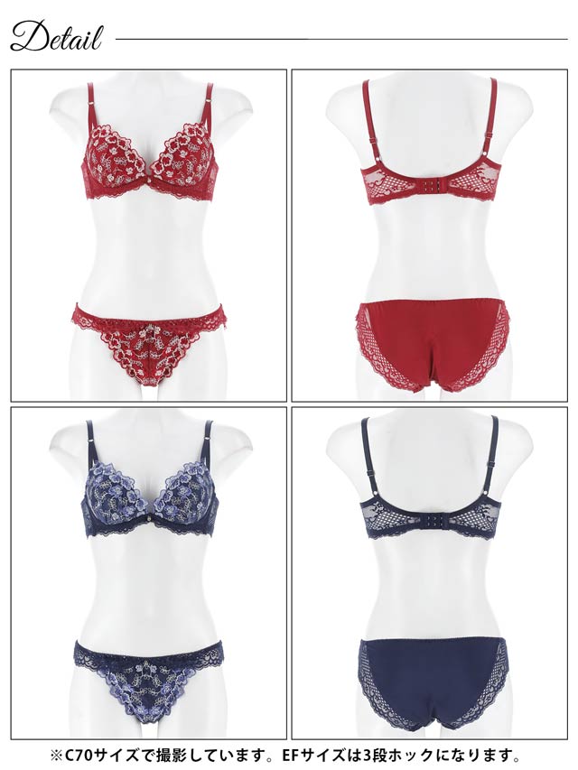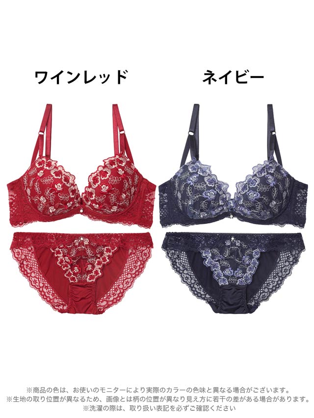 9/8新作!【EFサイズ】ルミナスリッチフラワー育乳ブラジャー&フルバックショーツ[推し]