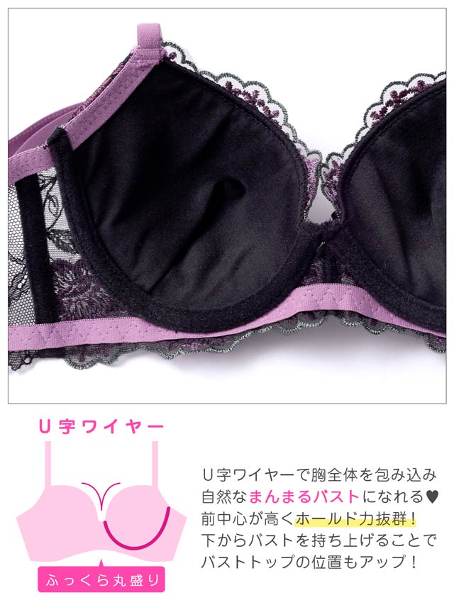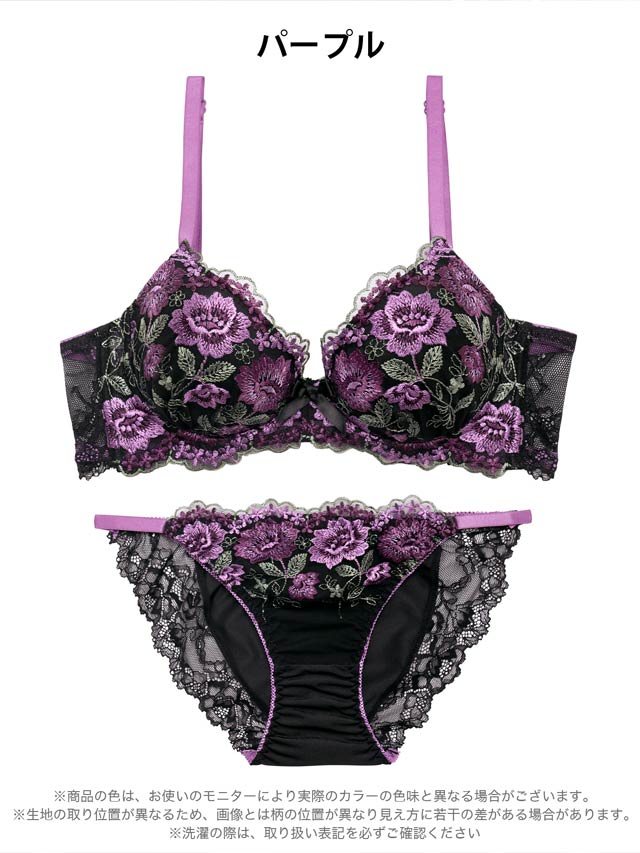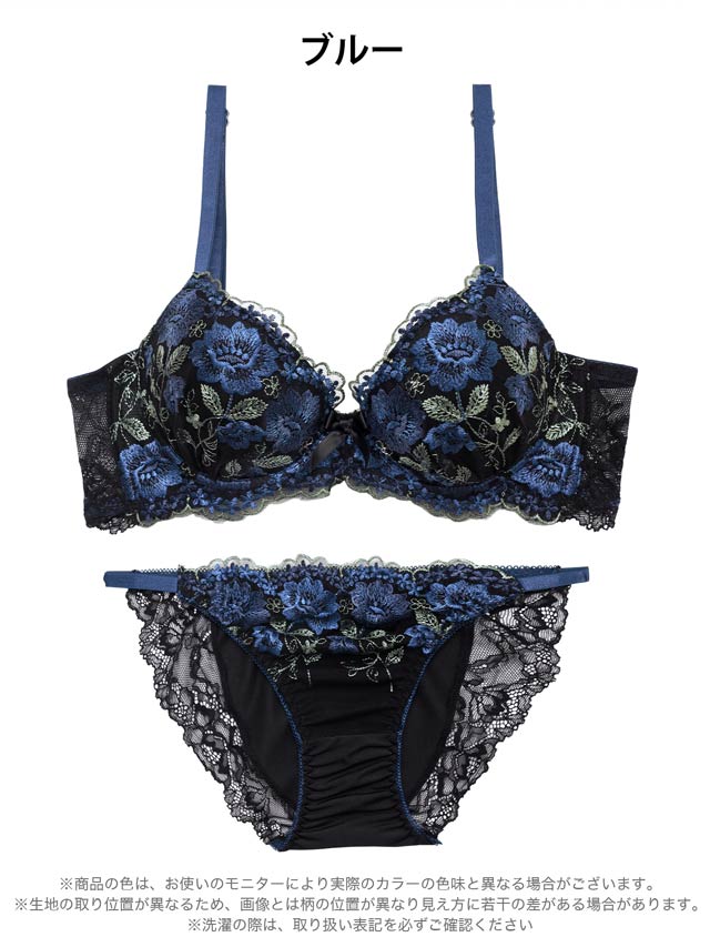 4/17新作!ダークフラワーブルーム育乳脇高ブラジャー&フルバックショーツ[推し]