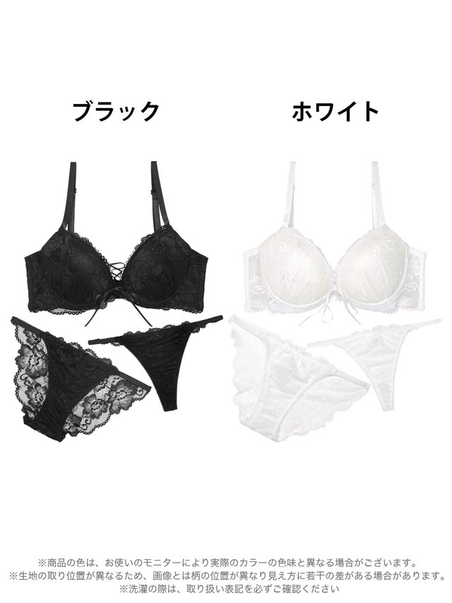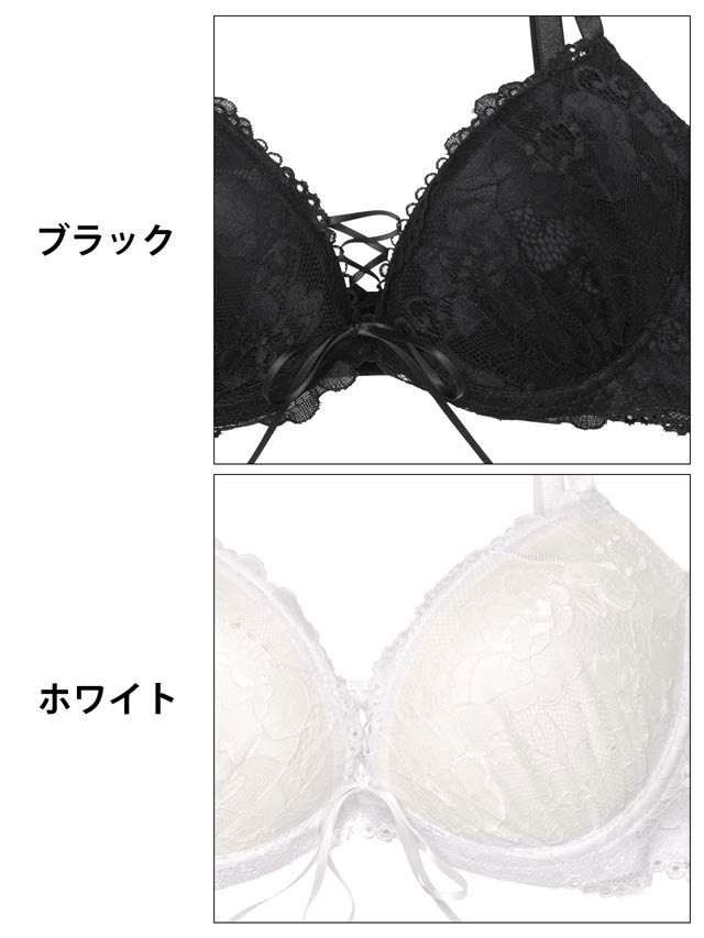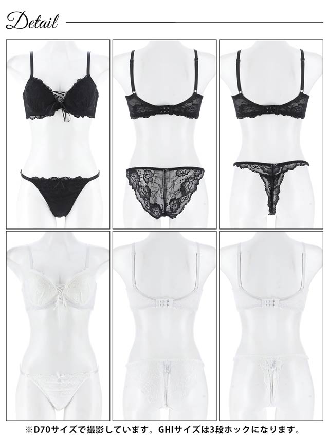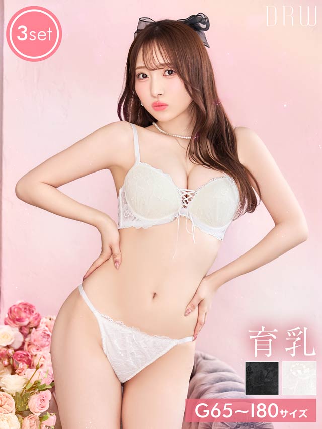 8/1新作!【かとゆり着用】【3点セット】【GHIサイズ】エレガンスレースアップ育乳ブラジャー&バック透けフルバック&Tバックショーツ[推し]