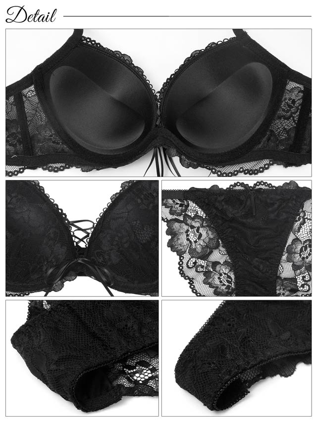 バストを強調するレースアップデザインがポイントになったエレガントな総レースのランジェリー。ショーツは華奢なサイドストリング×バック透け仕様で360度セクシーに肌見せ♪フルバック・Tバックが両方ついているので、気分やお洋服に合わせて使い分けできちゃいます!