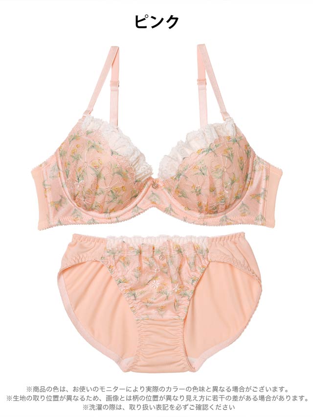 11/3新作!【EFサイズ】フェミニンメロウブロッサムブラジャー&フルバックショーツ[推し]