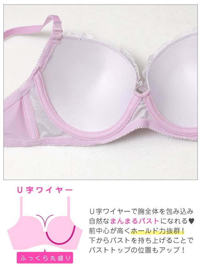 3/4カップ(モールドカップ)/ワイヤー:有(U字(ソフトワイヤー))/ホック:バック2段3列