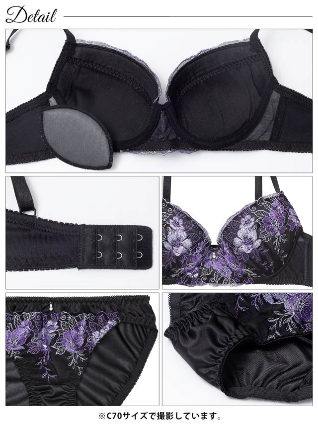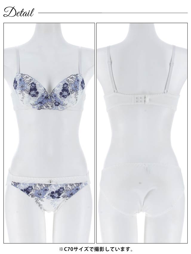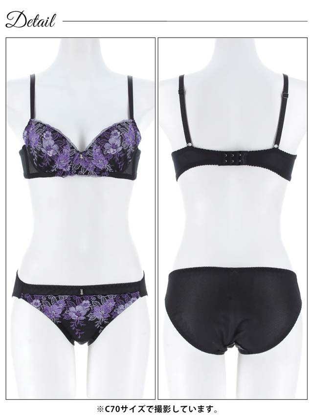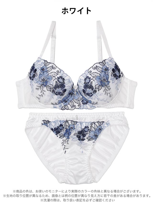 色鮮やかな花々と細かいアイビー刺繍が大人セクシーさ際立つランジェリー。中央で揺れ動く2粒チャームが可憐な印象をプラスします◎ 場面を問わず使いやすいフルバックショーツはデイリー使いにもおすすめな1着です。