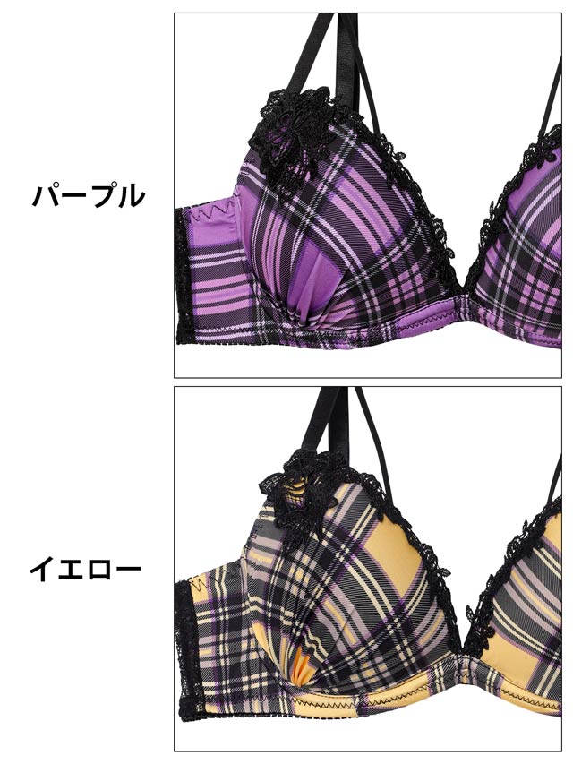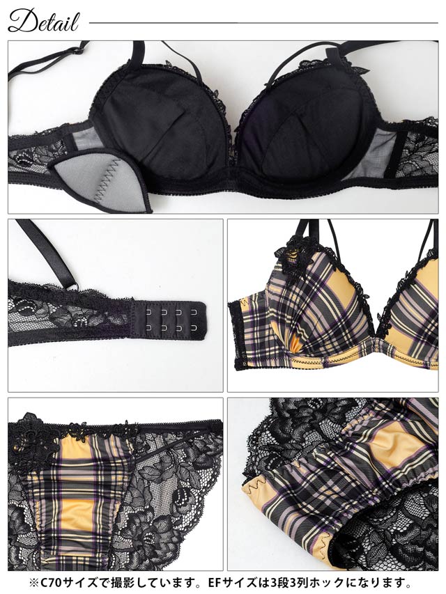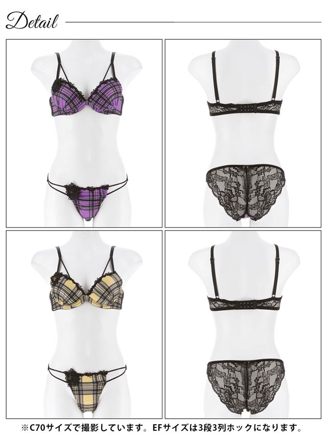 10/15新作!【EFサイズ】ビターモードチェックブラジャー&バック透けフルバックショーツ[推し]