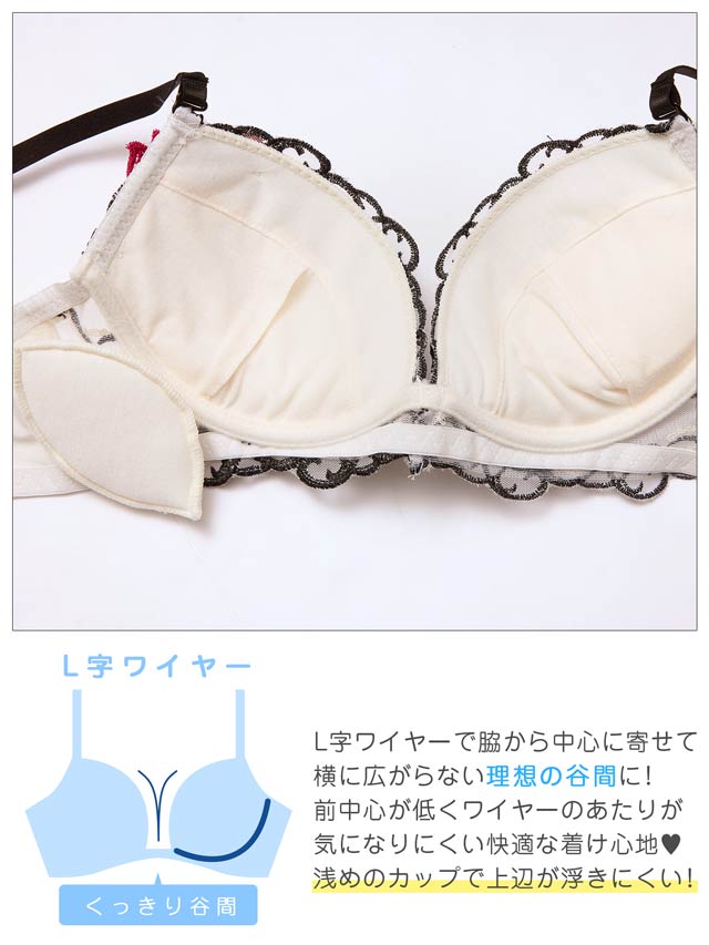 3/4カップ(モールドカップ)/ワイヤー:有(L字)/ホック:バック2段3列