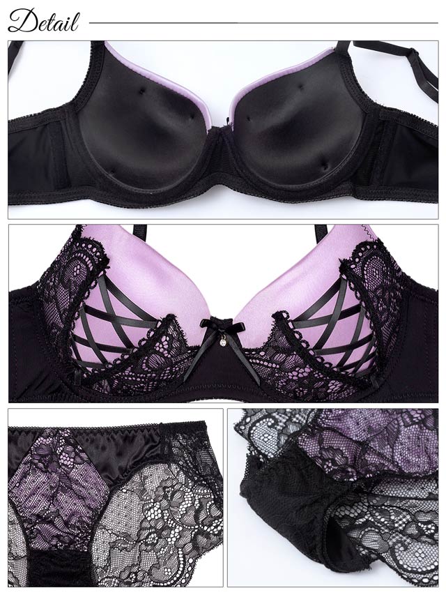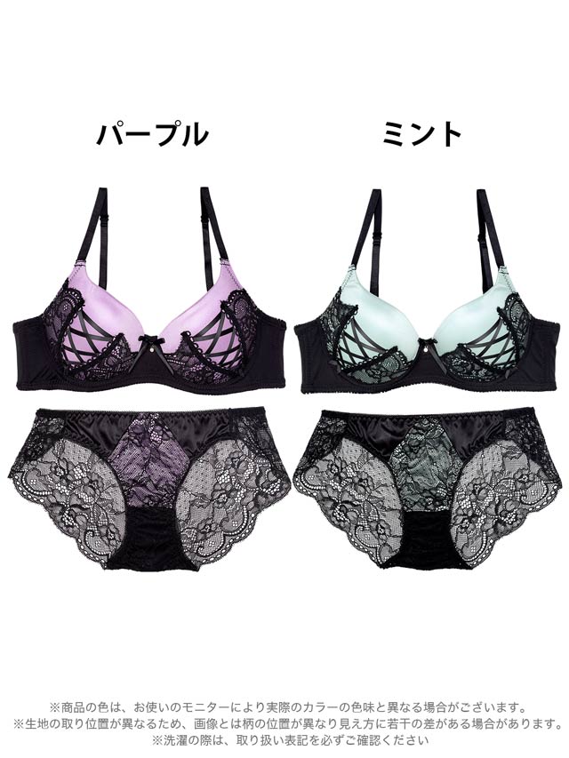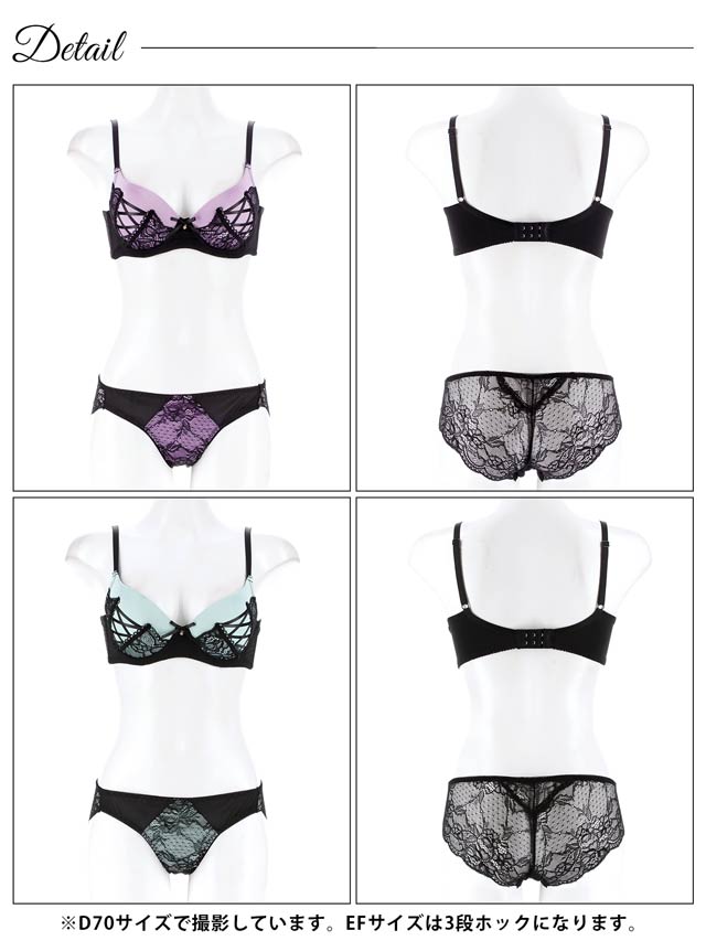 8/19再販!【EFサイズ】アリュールレースアップ育乳ブラジャー&バック透けフルバックショーツ[推し]