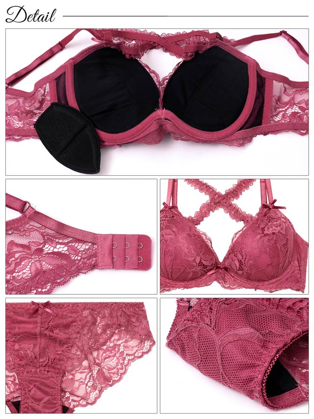 デコルテを華やかに演出するクロスデザインが印象的なランジェリー。上品かつ色っぽい肌透けを魅せてくれるレース生地を360度あしらった贅沢な1品♪ 谷間を自然に集め美しいシルエットを叶える脇高構造で快適な着心地を叶えます。