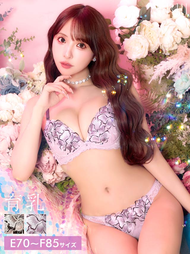 4/3新作!【EFサイズ】【三上悠亜着用】ゴージャスフルールエンブロイダリー育乳脇高ブラジャー&フルバックショーツ[推し]