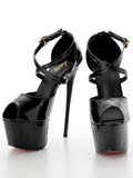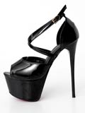 [16cmヒール]エナメルクロスストラップオープントゥパンプス[XS~3L/6サイズ展開][dazzyオリジナル]
