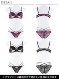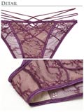 素肌にレースを重ねたようなデザインに思わず視線を奪われるランジェリー。交差するマカロニコードを大胆にあしらい大人な色気を演出。バックは上品な透け感のシアーレースで後ろ姿まで華やかに見せてくれます。