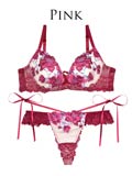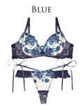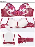 色鮮やかなフラワー刺繍が華やかなランジェリー。谷間魅せカット&レースアップデザインで色気抜群◎ サイドフリルレースの上に重ねた紐リボンコードのWラインが可愛らしさも欠かさない1着です。