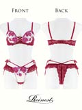 【Tバック】三上悠亜着用【Reinest】ヴィーナスフラワーレースアップブラジャー&バック透けTバックショーツ
