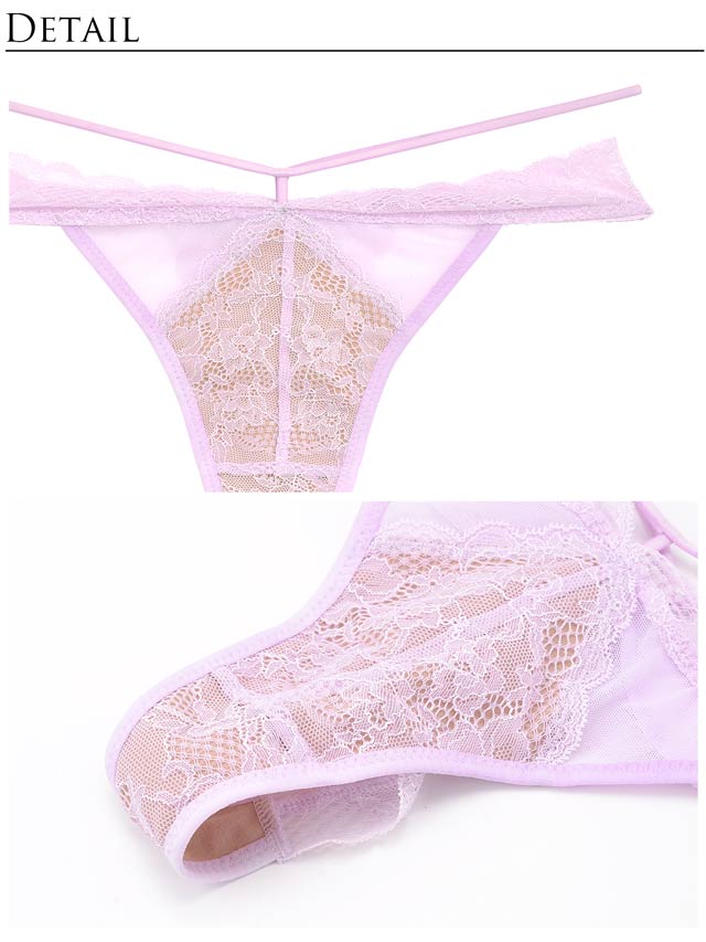 Tバック/クロッチ当て布:有/股上:普通/伸縮性:有/フロントサイド透けあり