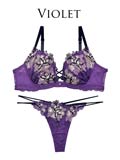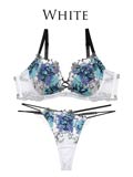 色鮮やかなフラワー刺繍に透け感のあるローズを重ねたランジェリー。大胆なレースアップデザインは谷間からセクシーさ溢れるアクセントに◎ アシンメトリーにカットされたショーツはこなれ感を演出する1着です。