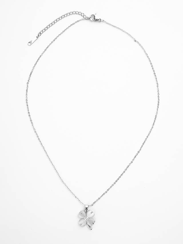 2/27新作!クローバーモチーフシルバービジューネックレス[店内アクセ]
