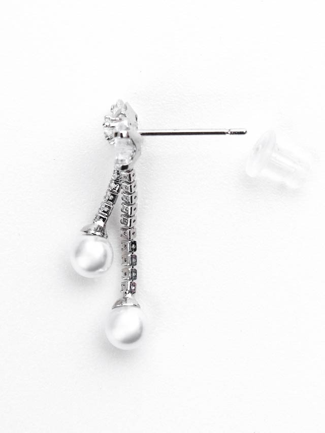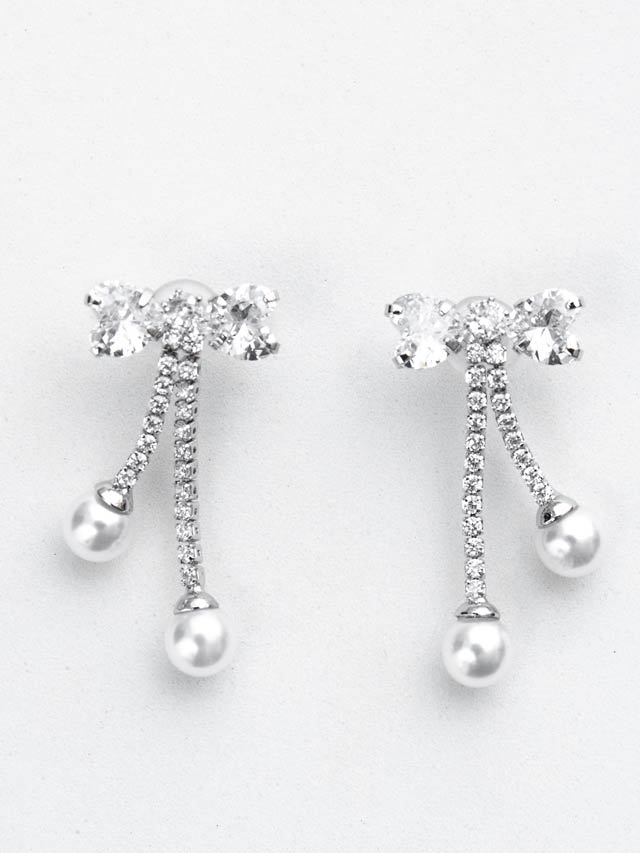 きらりと輝くリボンモチーフのビジューが、フェミニンで可憐な印象を与えるピアス。先端で揺れるパールが女性らしさを引き立て、さりげなく上品な存在感をプラスします。ドレススタイルにはもちろん、デイリー使いにもおすすめのアイテムです♪