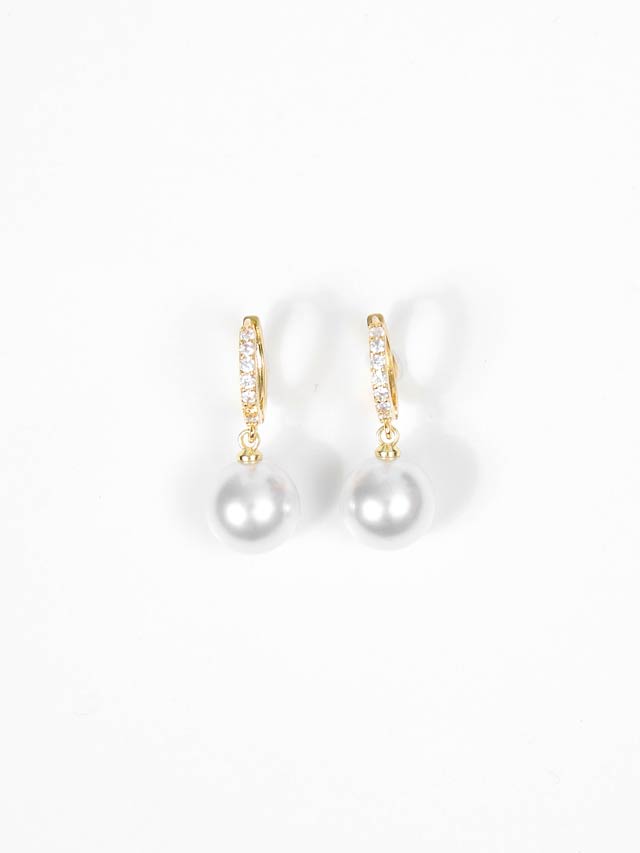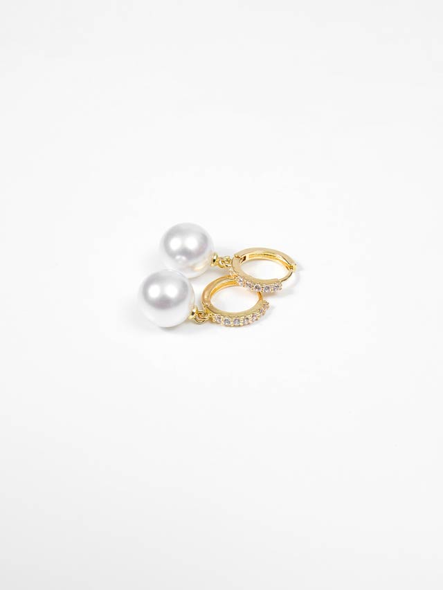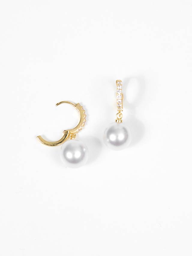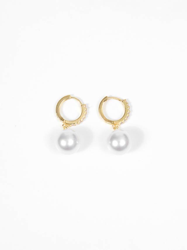 揺れ動くにドロップパールに、ビジューを埋め込んだゴールドリングが繊細で華やかなピアス。キャッチを失くす事のない、ストレスフリーなリングタイプで着用も楽ちん♪ お仕事やパーティーシーンなど幅広く使えるアイテムです。