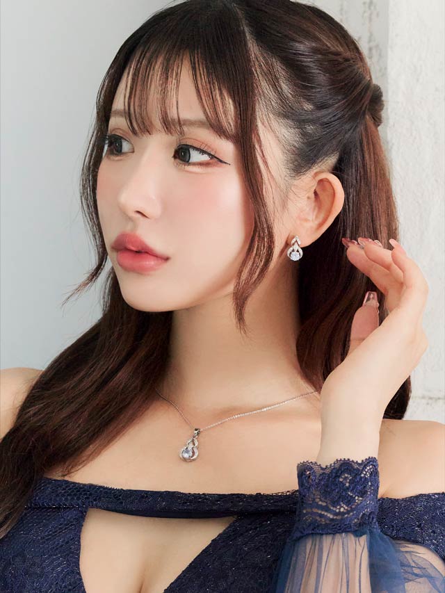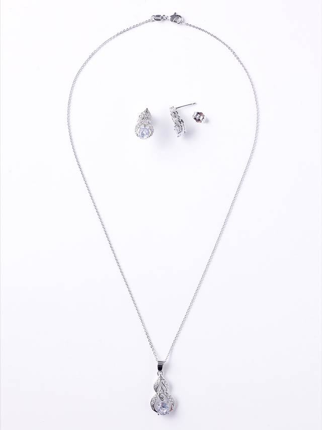 リーフモチーフ中央で輝きを放クリスタルが印象的なネックレス&ピアスセット。大粒なデザインで洗練された女性らしい印象をプラスします◎ カジュアルにもフォーマルにも幅広いシーンで身に着けられるアイテムです♪
