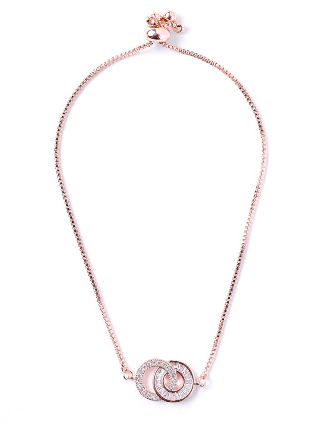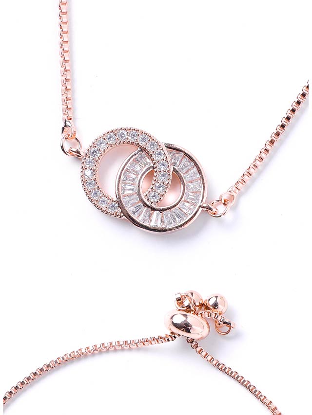 デザインの異なるダブルリングを合わせた個性溢れるブレスレット。カジュアルからフォーマルまで、幅広いシーンで活躍すること間違いなし!スライド式のアジャスターなのでサイズ調節が簡単なのも嬉しいポイントです♪
