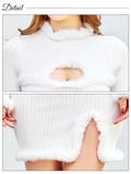 パイピング部分にふんわりとしたファーを施したニットワンピース。ホールデザインで谷間をさり気なくアピール◎ スリット入りスカートで脚長効果と色っぽく太腿見せも出来ちゃう1着です♪
