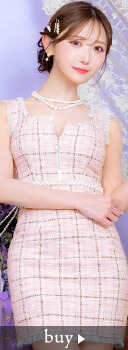 色鮮やかなツイードが 他と差がつく印象的なドレス💘 ドット柄のチュールと 裾のフリルがガーリーさ溢れる✨ えちえち谷間ジップで色気もGET✊