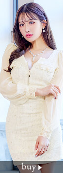 高見えツイード生地に 胸元カシュクールビジューで アクセいらず👌華やかうちゅくし透け魅せシアーでちょいえち😘令和の谷間魅せデザインはコレ♡