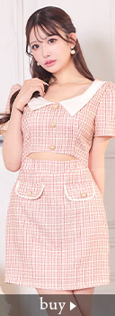 12/2再販![桜井みづき着用★小さめサイズ]3日で即完!!フリンジツイードチェックパールビジュータイトミニセットアップドレス[Petit Madeleine プティマドレーヌ]