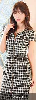 12/2再販![桜井みづき着用★小さめサイズ]3日で即完!!フリンジツイードチェックパールビジュータイトミニセットアップドレス[Petit Madeleine プティマドレーヌ]