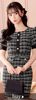 12/2再販![桜井みづき着用★小さめサイズ]3日で即完!!フリンジツイードチェックパールビジュータイトミニセットアップドレス[Petit Madeleine プティマドレーヌ]