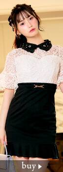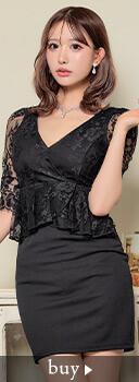 12/2再販![伊藤桃々着用][3Lサイズ◎]大人の色気ムンムンな谷間ジップ×上品フラワーレース気になるお腹隠せるペプラム五分袖ミニ丈キャバドレス