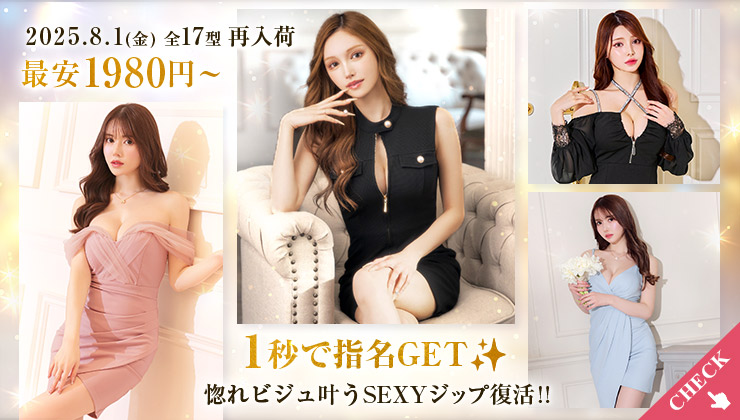 12/2再販!【累計販売4000枚突破】胸元ジップがとにかく盛れる!お客さんが喜ぶセクシー肌見せキャバドレス