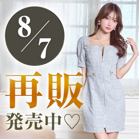 12/5新作![明日花キララ着用]胸元SEXYジップに輝く肩リボンで魅せるツイードスリットタイトミニ丈キャバドレ
