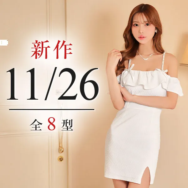 SEXYギャザーフリルオフショルタイトミニ丈キャバドレス[SML/3サイズ展開]