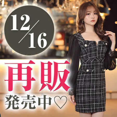12/16再販! 体型カバー抜群!!谷間魅せジップ×冬ツイードパフスリーブマーメイドミニ丈キャバドレス