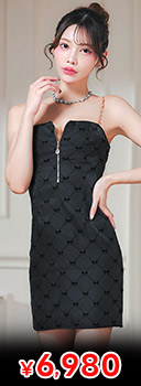 今っぽリボンチェック×チェーン 谷間ジップタイトキャバドレス