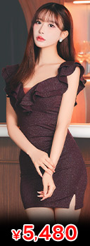 ラメ生地とフリルで女らしさも スリットキャバドレス