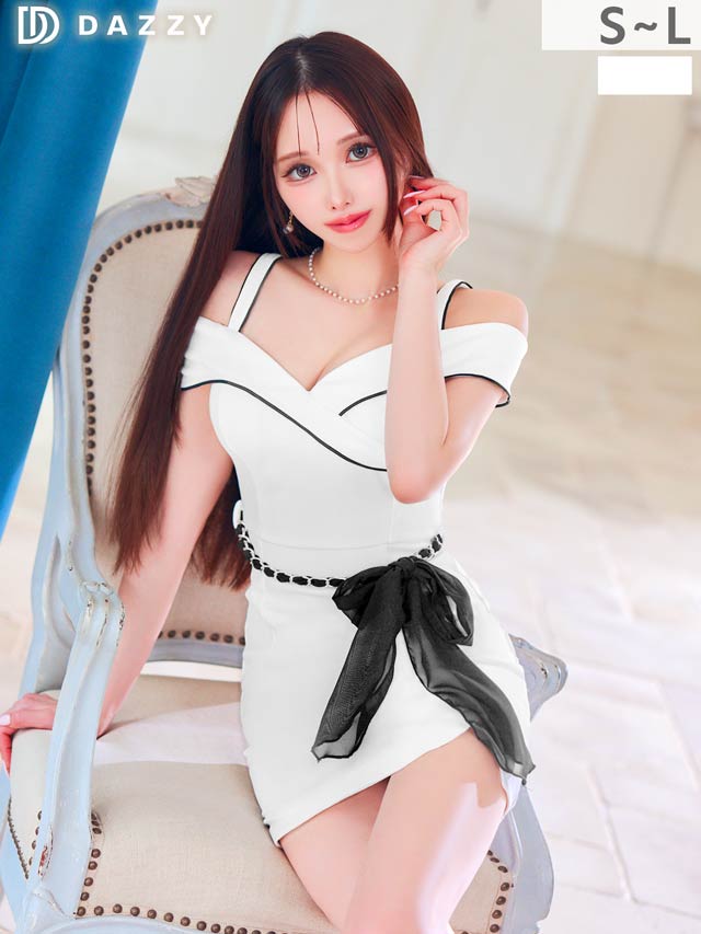 チェーンリボンが今っぽこなれ感⛓ SEXYオフショルドレス