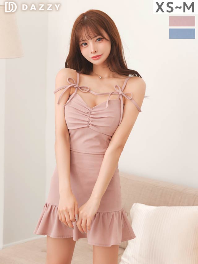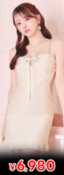 大人かわいいデコルテリボン付き 谷間ジップキャバドレス