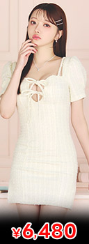 リボン×谷間ホールがあざとCUTE ラメツイードタイトドレス
