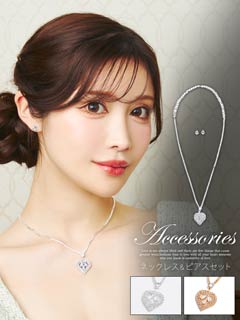 11/25新作![2点SET]オーバルカットビジューネックレス&ピアスセット[店内アクセ]